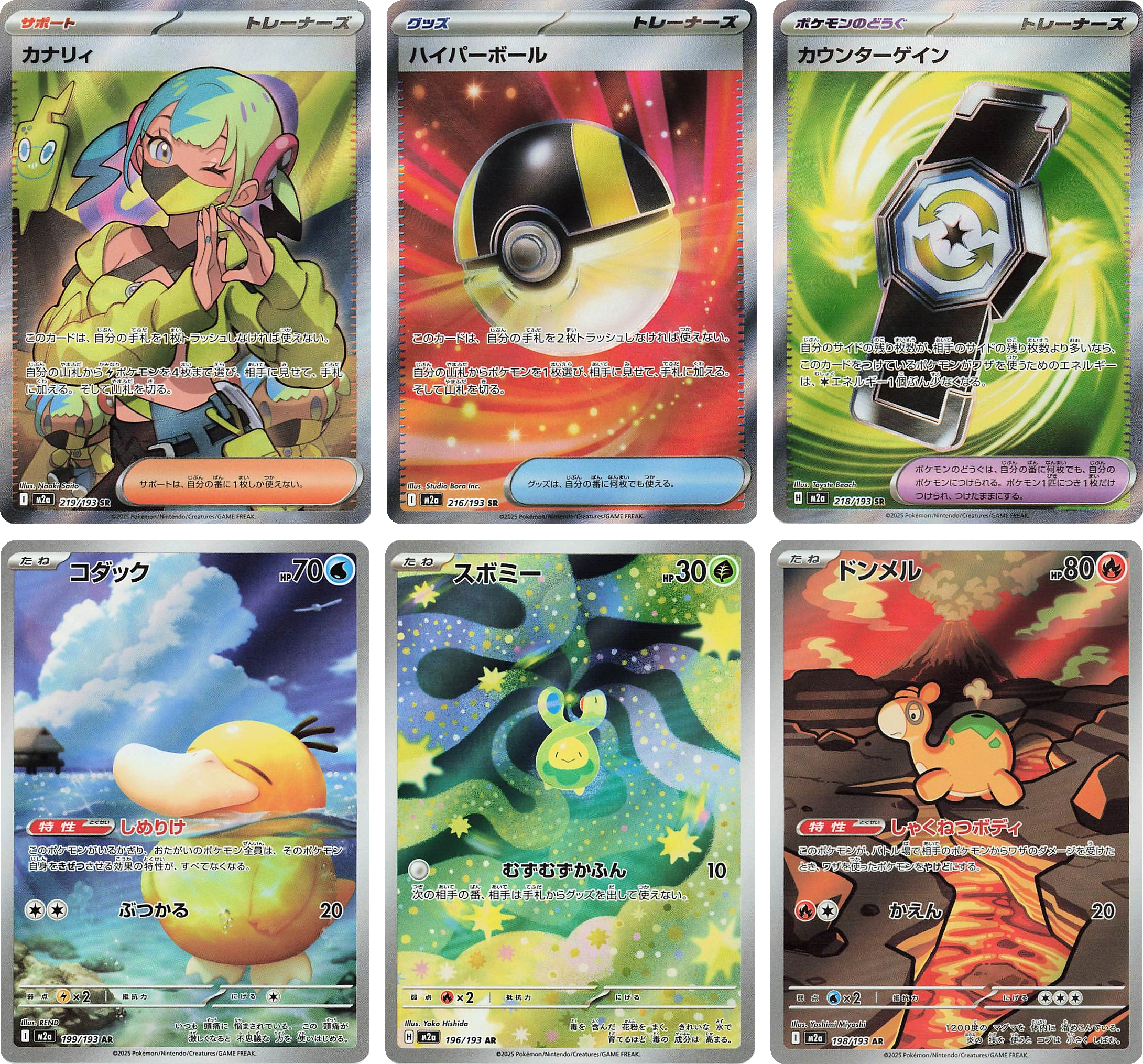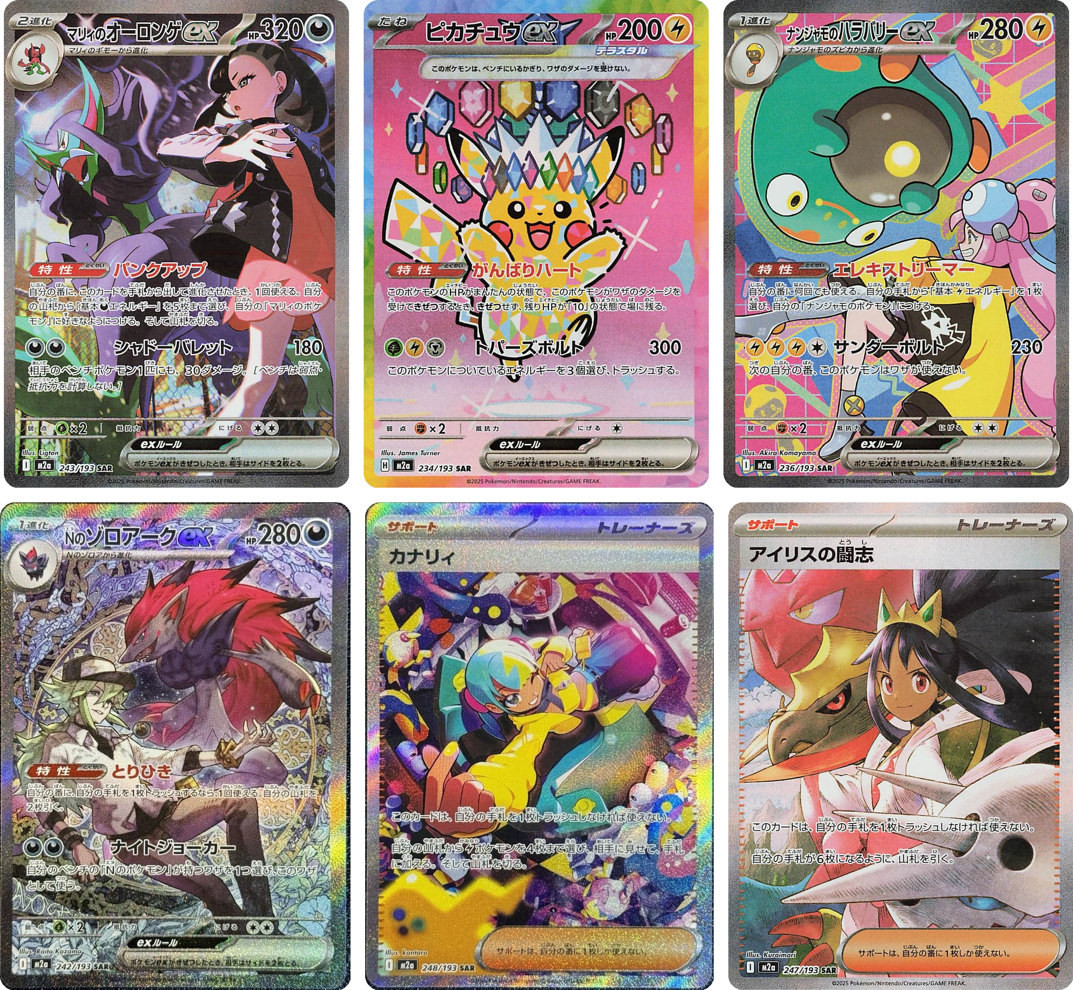 The 1:50 MUR rate inherited from Mega Brave continues the trend of increasingly scarce ultra-premium rarities. SAR rates at 1-2 per box create difficult targeting for specific cards—collectors chasing Mega Gengar ex SAR face approximately 1:17 odds per SAR pull, translating to ~9 boxes expected to pull that specific SAR.